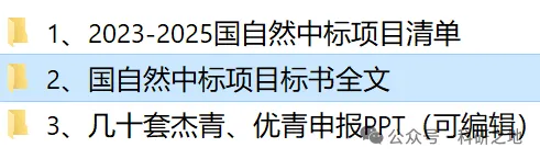 “2025年国自然标书中标清单+标书全文+杰青优青申报PPT”,点击下方《科研之地》公众号关注后发送“2025基金”即可免费获取:
