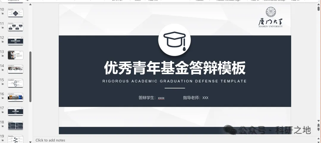 所以,小编将自己杰青申请的PPT(2025年已中标)分享给大家,点击下方《科研之地》公众号关注后发送“杰青PPT”即可免费下载!