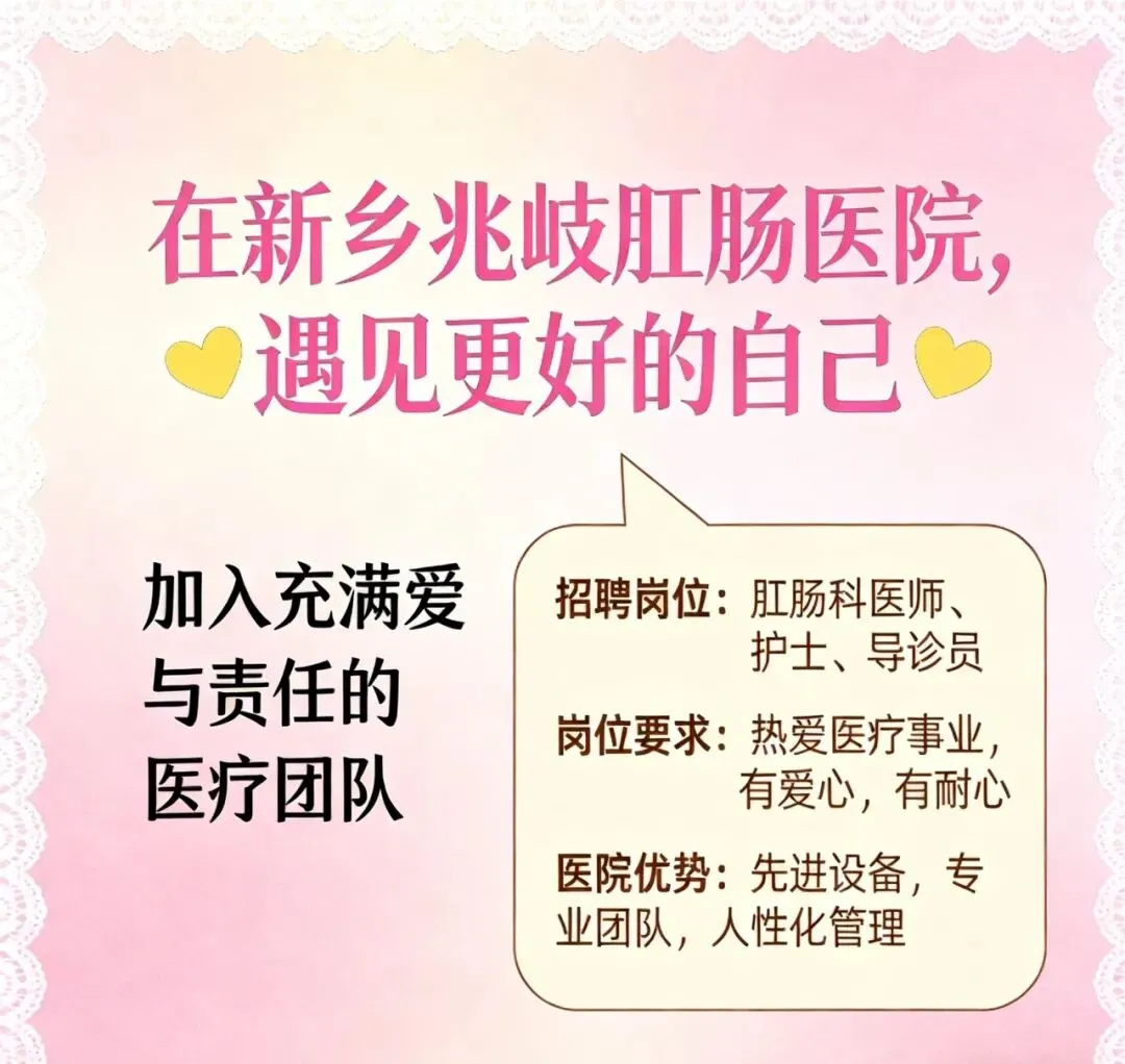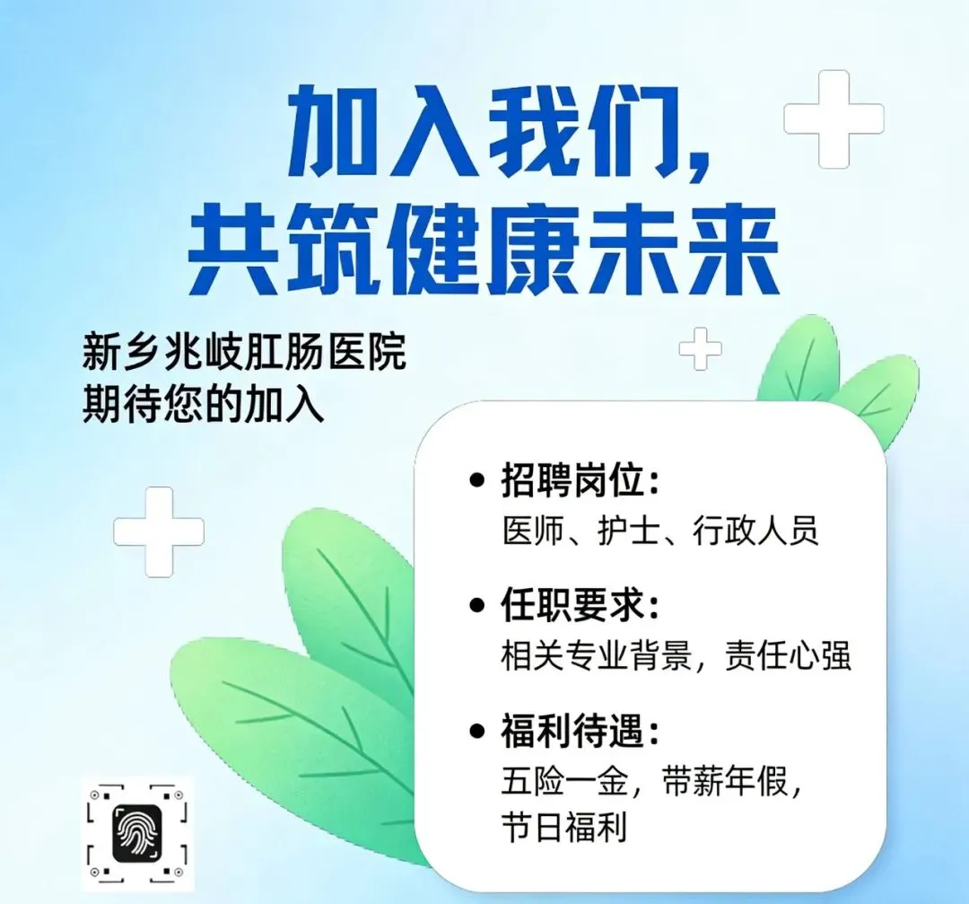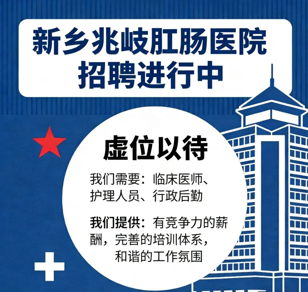 为满足医院学科发展与服务升级需求,打造高素质医疗服务团队,新乡兆岐肛肠医院现面向社会公开招聘临床、护理、医技、管理及后勤等多岗位优秀人才。