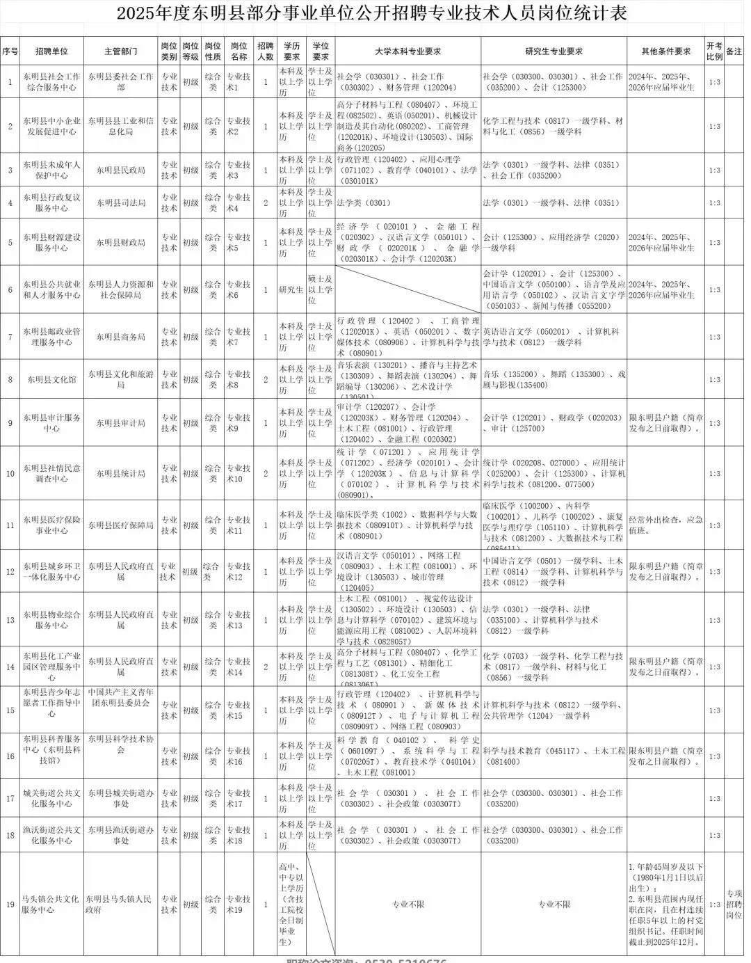 1.2025年度东明县部分事业单位公开招聘专业技术人员岗位统计表