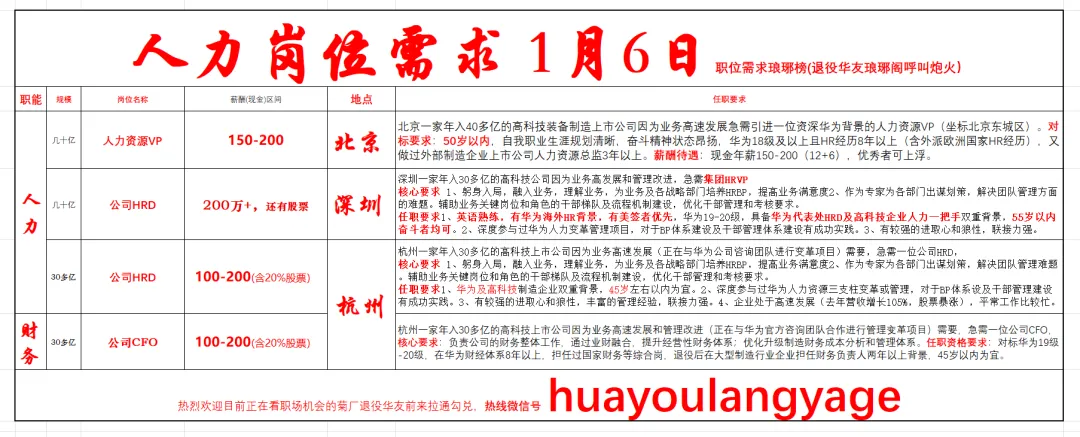 希望我司退役员工既具备华为先进管理经验又掌握如何适应大多数企业的生存技巧,职业生涯更加稳健些。