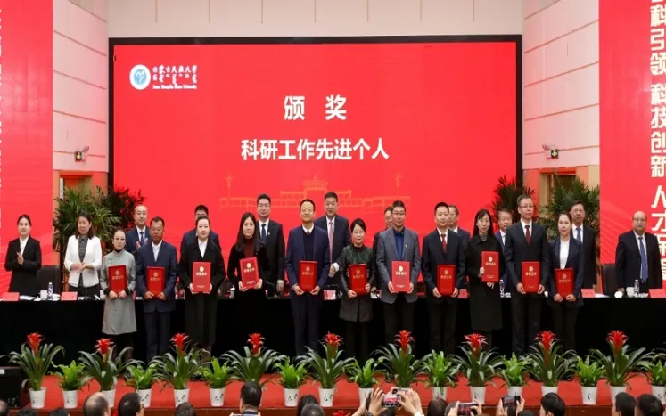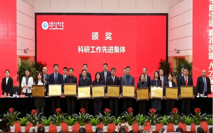 同时,我院阿拉坦格日乐院长作为“人才工作先进个人”获得者、齐风华作为“青年科技创新奖”获得者、阿如娜和香琴作为“科研工作先进个人”获得者受表彰。校领导为在学科、科技、人才工作中取得优异成绩的先进集体和先进个人颁奖。