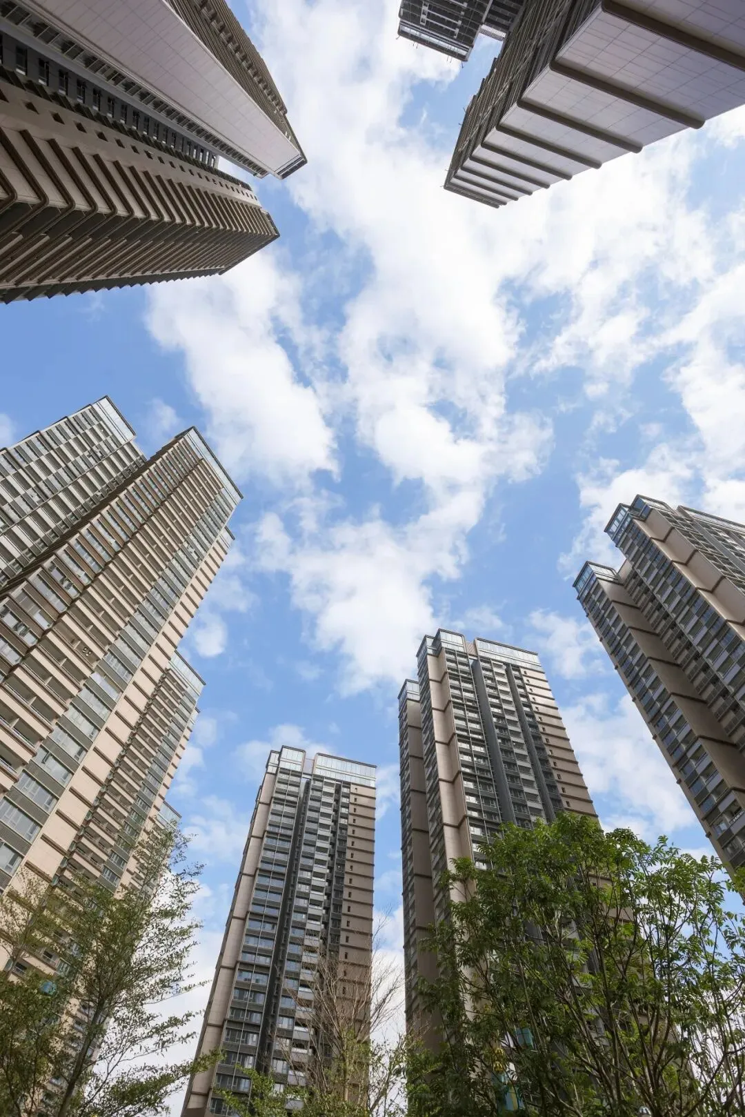 几栋高层建筑井然有序地崛起在山麓下,远远望去,外观靓丽,形象挺拔,与周边的环境浑然一体,自然和谐。