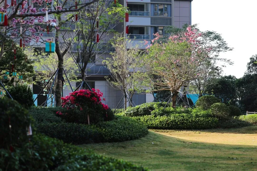 在中心花园上,还臻选万紫千红的绣球紫花风铃木和花黄风铃木,花旗木点缀其中营造满园花香交织锦簇,未来还会通过美学布局杨梅、嘉宝果等果树,营造小区温馨和谐的园林环境。