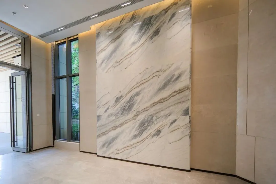 另外,部分单元在原有入户大堂基础上,在另一侧增加一个大堂,打造首层双入户大堂,且地面、墙面采用天然大理石打造,提升入户品质感。
