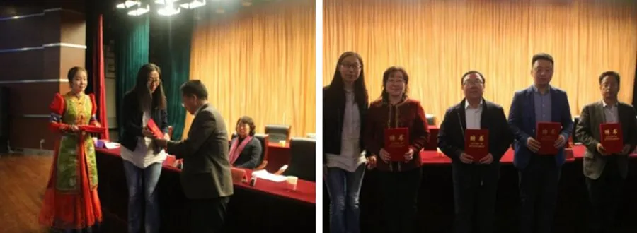 今年,在数学科学学院2015级本科生教育专业实习总结交流会上,第一次请来实习基地导师作报告,并当场向其发放聘书,以资鼓励,特聘南文廷校长、道日吉教授、潮洛濛老师、金晓寅老师担任内蒙古师范大学数学科学学院兼职实习指导教师。