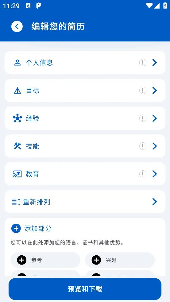 操作起来也简单,选择好模板后,系统会清晰标注需要填写的内容模块,跟着提示逐一补充信息就行。填写完成后,软件会自动适配模板排版生成简历,支持实时预览和一键下载,再也不用对着本地文档反复调试格式、排版,节省大量时间精力。