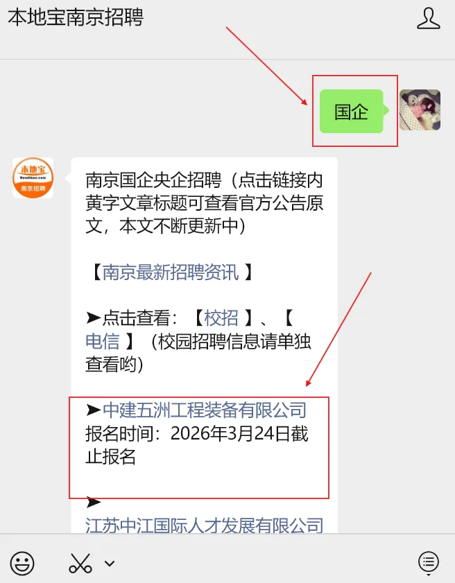 注意:进入【本地宝南京招聘】公众号,对话框发送关键词【国企】,即可获取招聘信息详情、报名材料下载入口、简历投递入口等
