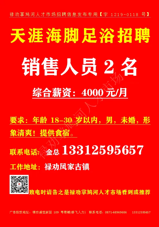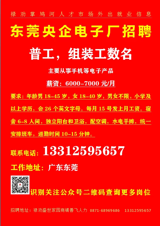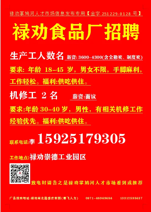 致电时请告之是禄劝掌鸠河人才市场公众号看到或推荐