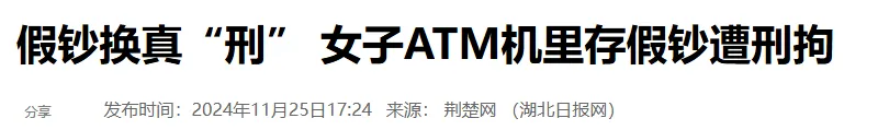 素材来源:青岛网络广播电视台-蓝晴今日+《男子将冥币存入ATM机 幻想卡上余额会增加》、光明网《一男子清晨去银行存冥币,ATM机都“傻”了!原因离谱至极》、泉州晚报《拿63张假币存银行 男子被抓》、荆楚网《假钞换真“刑” 女子ATM机里存假钞遭刑拘》