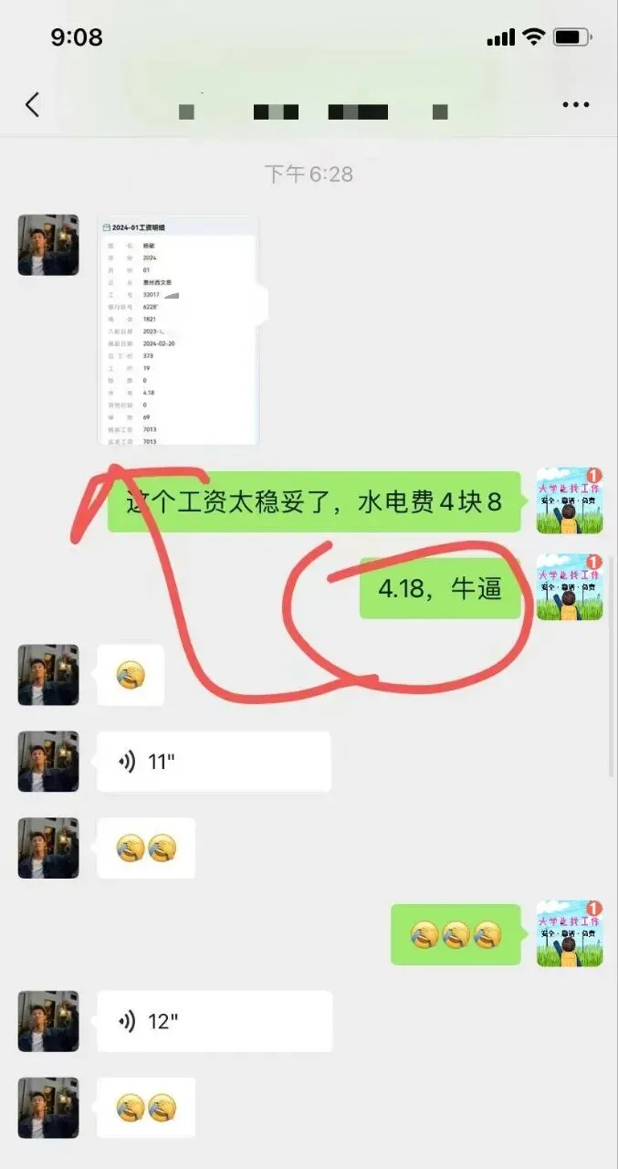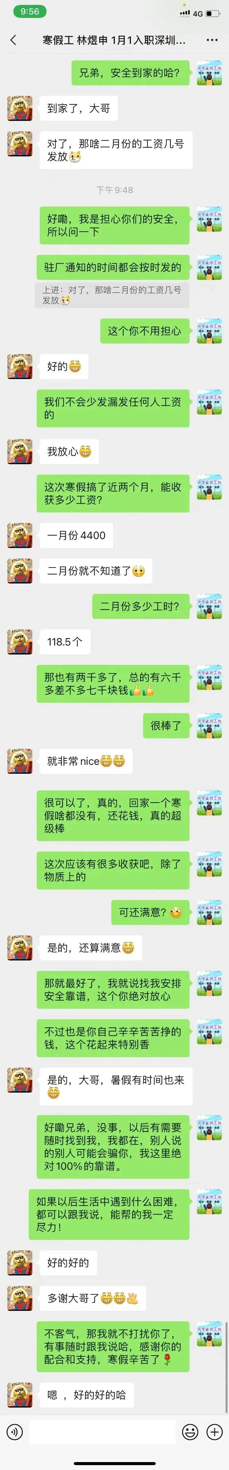 林煜申兄弟是元旦节就入职了,一直做到年后2月份,最近因为开学才离职返校,他在企业工作特别认真和努力,一个多月的时间挣到了6000多接近7000块钱的工资,回去基本上一个学期的开销都有了,他说暑假要去都还是会找我安排,也感谢他的支持和信任。