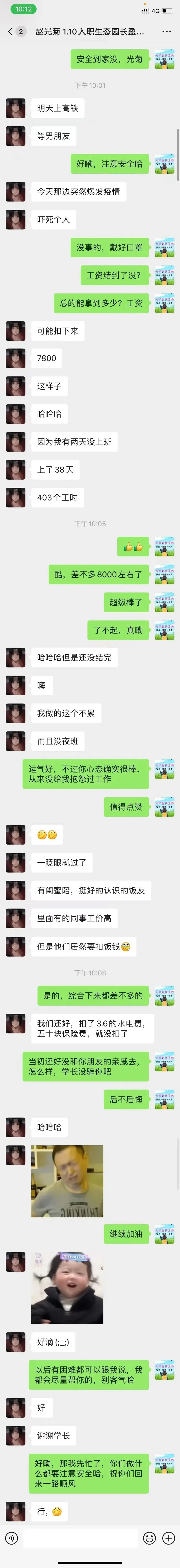 赵光菊小姐姐她之前本来是打算和朋友的亲戚一起去打寒假工的,最后选择了找我安排,她从贵州带着她的闺蜜一起去广东,一个寒假就收获了8000块钱,正好男朋友也在那里,所以工作约会两不误,过了一个特别充实的寒假,211大学的高材生也同样优秀,她们靠自己的能力去挣钱是最酷的,比起回去贵州过了一个冷冷的寒假,我相信这个决定是最正确的。