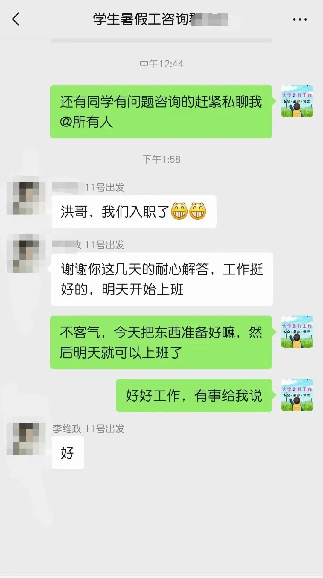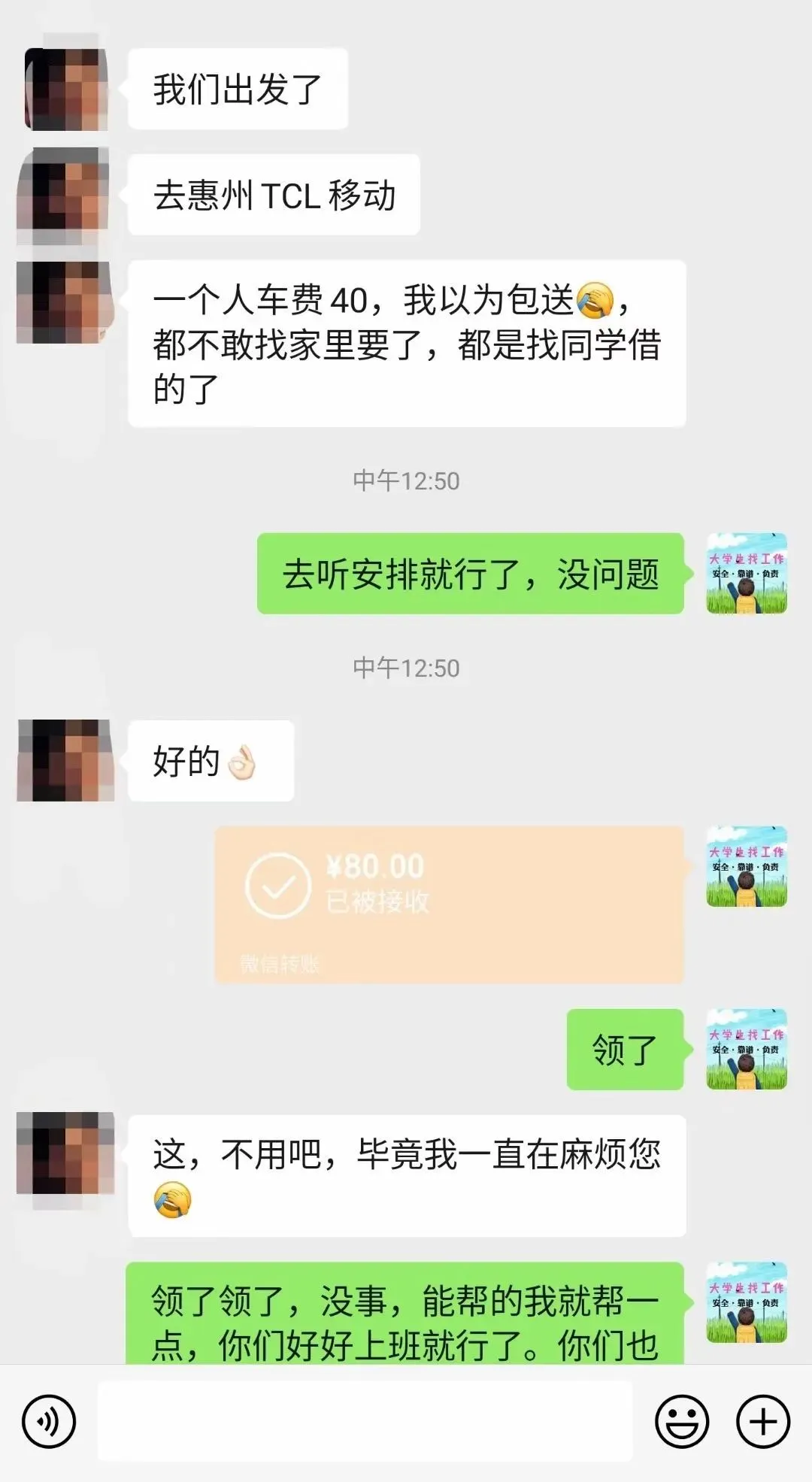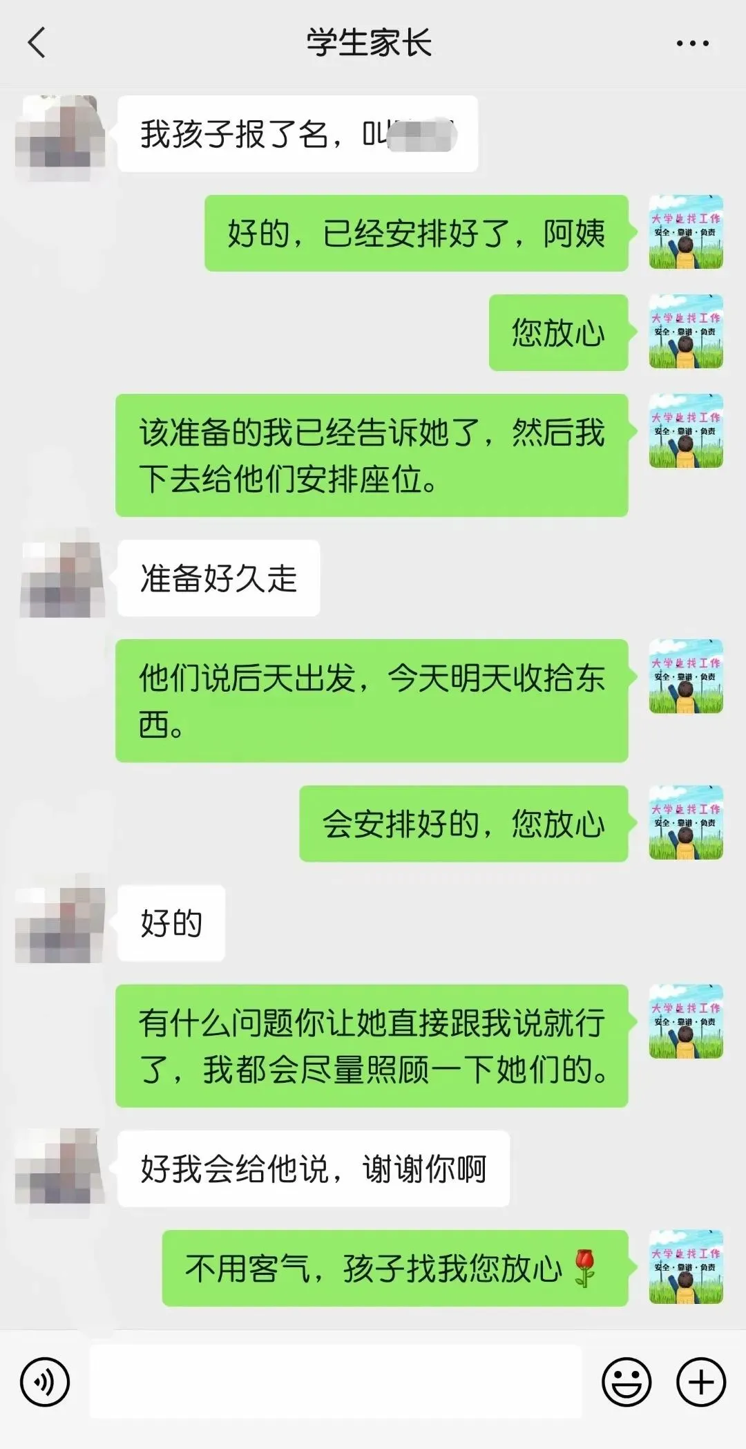 这里面有我和给一些同学安排入职的真实过程,还有和学生家长沟通,帮他们解决疑问等等,我想告诉同学们,找我我可以给你们保证绝对是你能找到最靠谱最安全的工作了,所以希望同学们能够尽快咨询报名,全国各地找我的学生都非常多,只要大家好好工作,我可以考虑给大家酌情报销一些车费,帮助更多的同学安安心心工作,平平安安回家,远离欺骗,不让家长担心。
