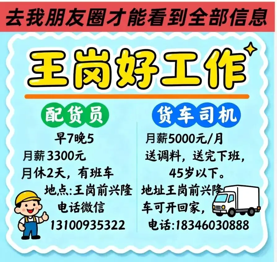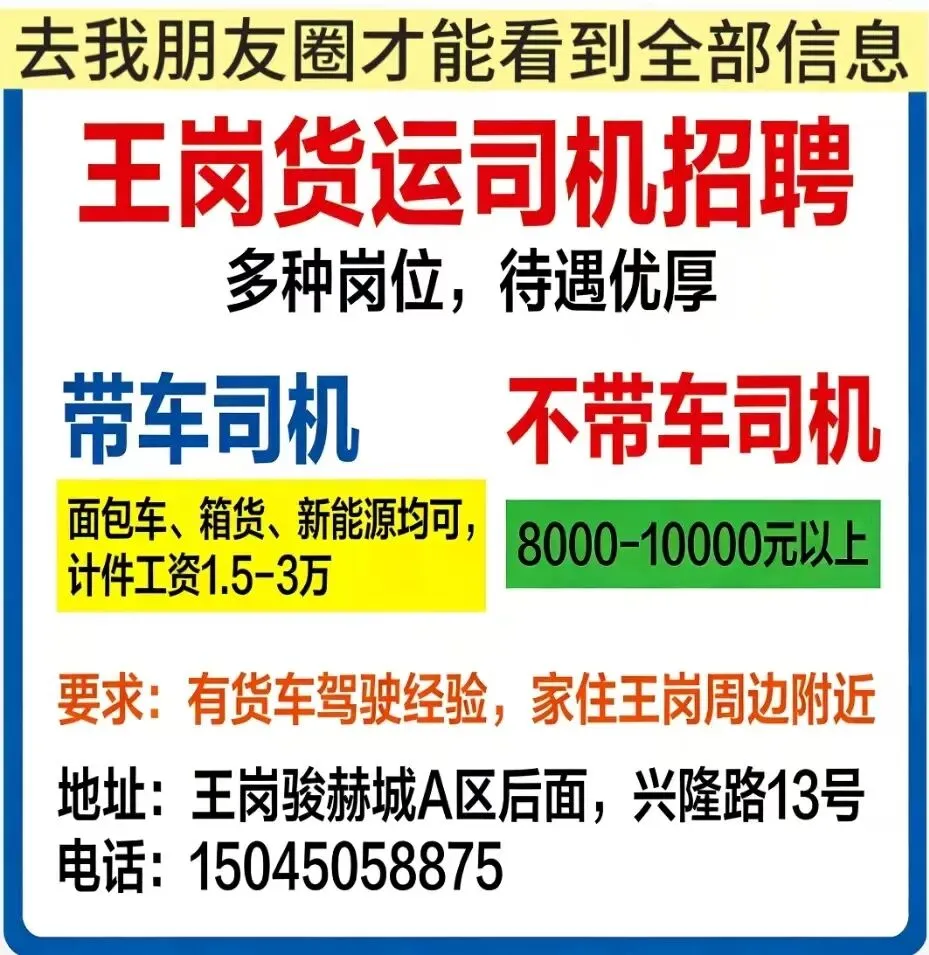 要求:身体健康,有货车驾驶经验,家住王岗周边附近