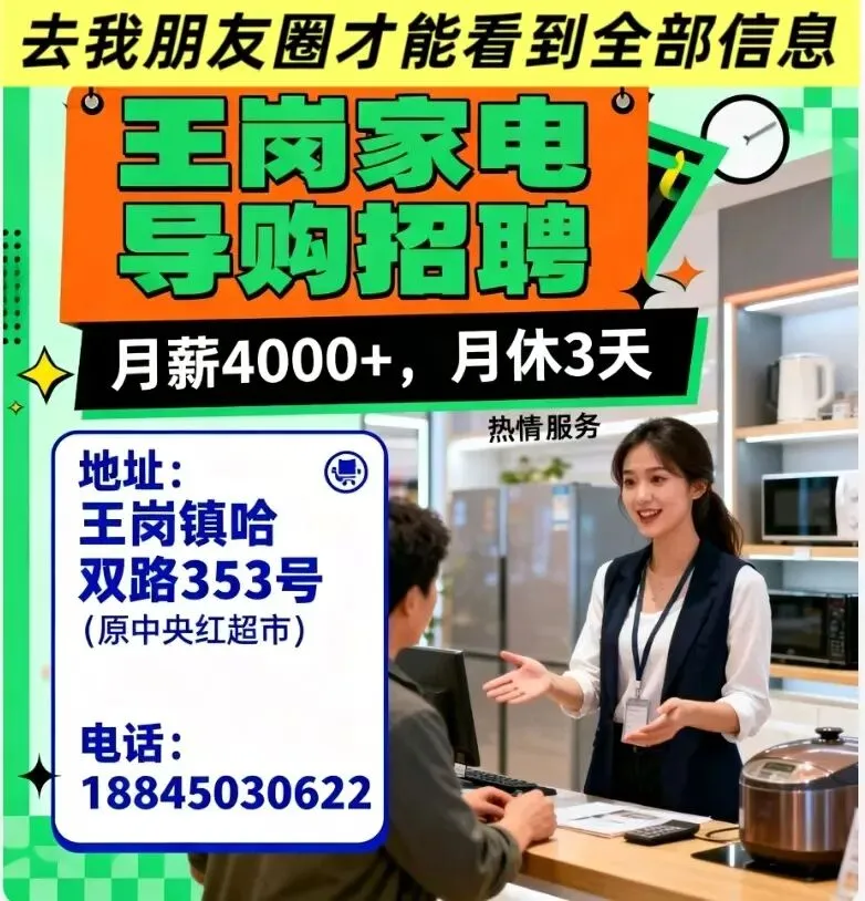 ✅【招聘家电导购】形象好,年龄25-35岁月薪4000+月休3天
