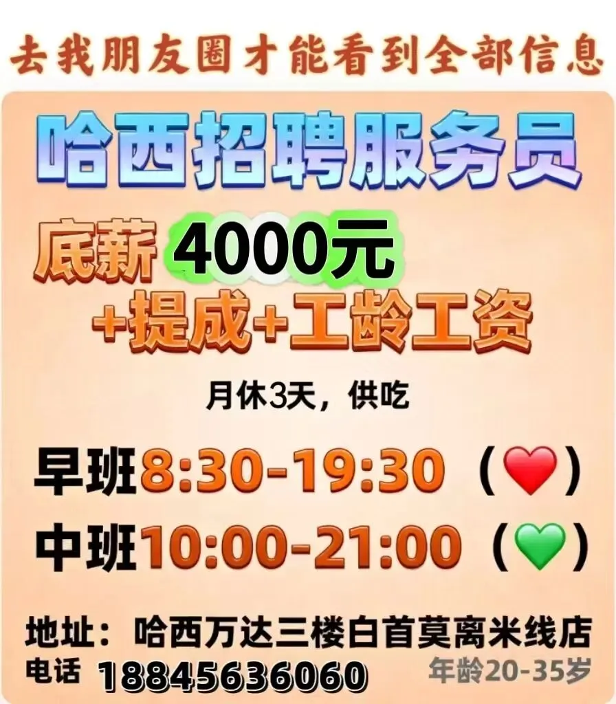🩷长期服务员:4000-7000元15:00-打烊(待遇好、有提成)