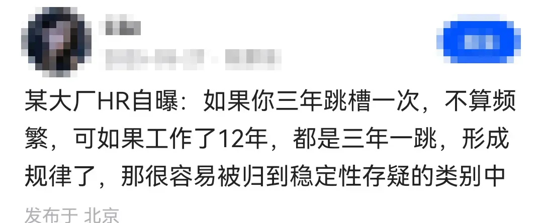 如果你三年跳槽一次,不算频繁,可如果工作了12年,都是三年一跳,形成规律了,那很容易被归到稳定性存疑的类别中