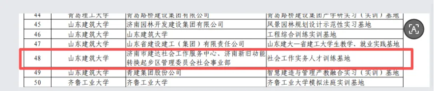 为积极响应山东省教育厅《关于开展2023年山东省普通高等学校示范性实习(实训)基地评选工作的通知》要求,山东建筑大学法学院社会工作专业联合济南新旧动能转换起步区管理委员会社会事业部、济南市建达社会工作服务中心共同申报,成功入选社会工作实务人才训练基地项目。下一步,起航社工将继续秉承“入主流、倡交叉、重应用、创特色”的学科发展理念,坚持“优势互补、资源共享、多维参与、共同发展”的建设原则,打造“政校社”人才培育平台,推动社会工作理论与实务双向赋能,为提升基层社会治理效能贡献“起航”力量。
