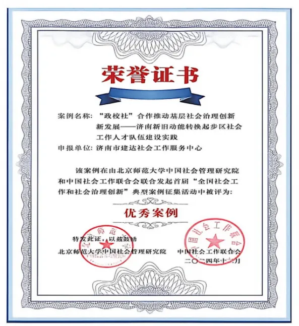 近年来,起步区起航社工始终秉持“扶困助难 同心同行”的服务宗旨,扎根基层、服务群众,积极构建专业化、精准化、人性化的社会服务体系。通过“政校社”联合培养社会工作专业人才模式,在济南新旧动能转换起步区社会事业部民政办公室的指导下,依托山东建筑大学法学院社会工作专业、济南市建达社会工作服务中心专家督导库搭建社会工作实务实训平台为基础打造起航人才社“政校社”人才培育平台。主要进行课程实务、实验教学、专业实习“三位一体”的实习实践模式,把社工专业服务触角延伸到基层。在服务过程中,起航社工注重理论与实践相结合,不断优化服务模式,提升专业能力,赢得了合作单位、服务对象及社会各界的广泛认可与赞誉。凭借持续的专业深耕与服务创新,起航社工喜讯频传,接连收获多项重要荣誉。