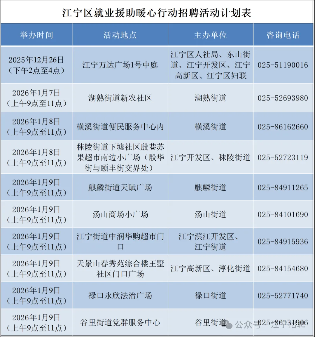 >【江宁招聘】1月招聘会
