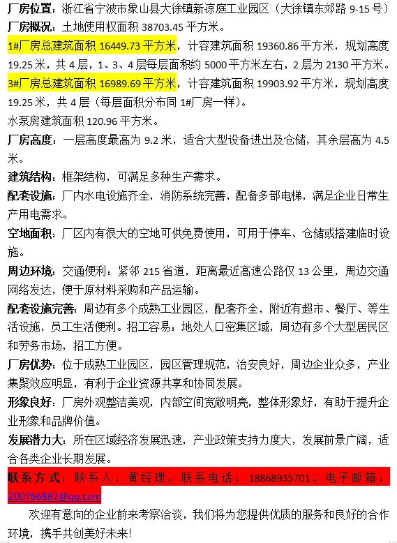 厂房招租/出售:象山县大徐镇新凉庭工业园区(大徐镇东郊路9-15号)
