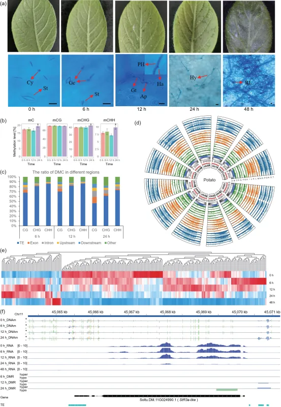 作为全球重要的粮菜兼用作物,马铃薯对保障粮食安全具有不可替代的作用。然而,由致病疫霉引发的晚疫病长期以来严重制约其生产。历史上,19世纪40年代的爱尔兰大饥荒便是由该病害引发,造成上百万人死亡;时至今日,晚疫病仍被联合国粮农组织列为全球最具破坏性的农作物病害之一,每年造成的经济损失高达约100亿美元。在植物应对病原侵染的过程中,DNA甲基化作为一种关键的表观遗传调控机制,不仅参与调控免疫相关基因的表达,还在维持逆境下基因组稳定性方面发挥着重要作用。