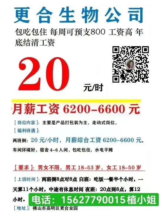 薪资待遇:20元/小时,两班倒(白班10.5小时/天,夜班11小时/天)