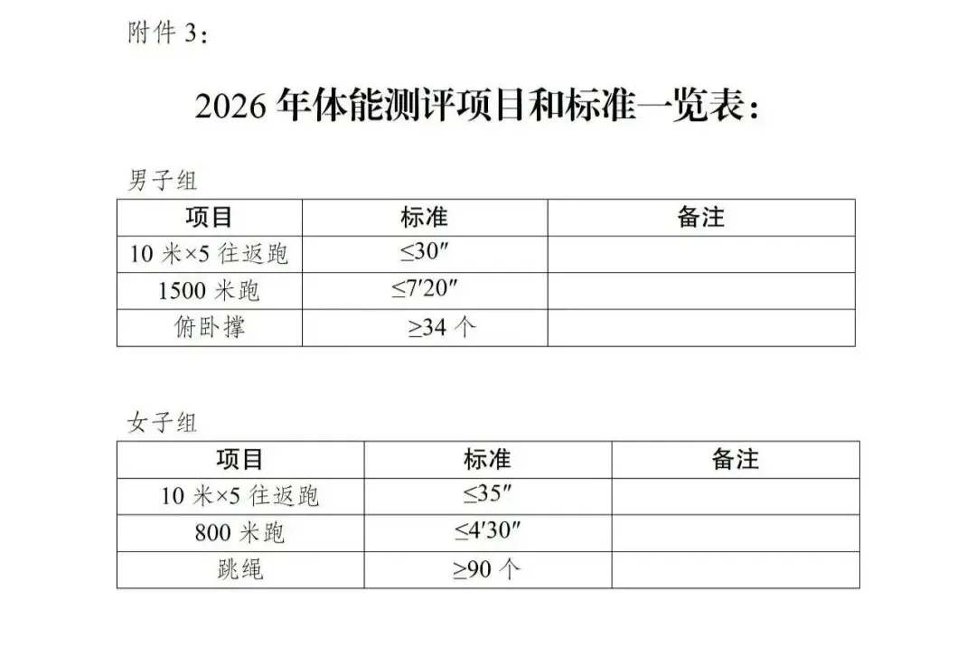 2)体能测试项目及标准(附件3)。