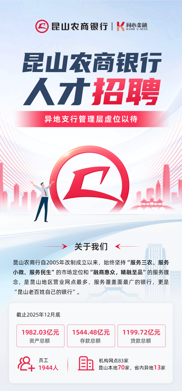 >金猎头 | 昆山农商银行异地支行管理岗位火热招聘中