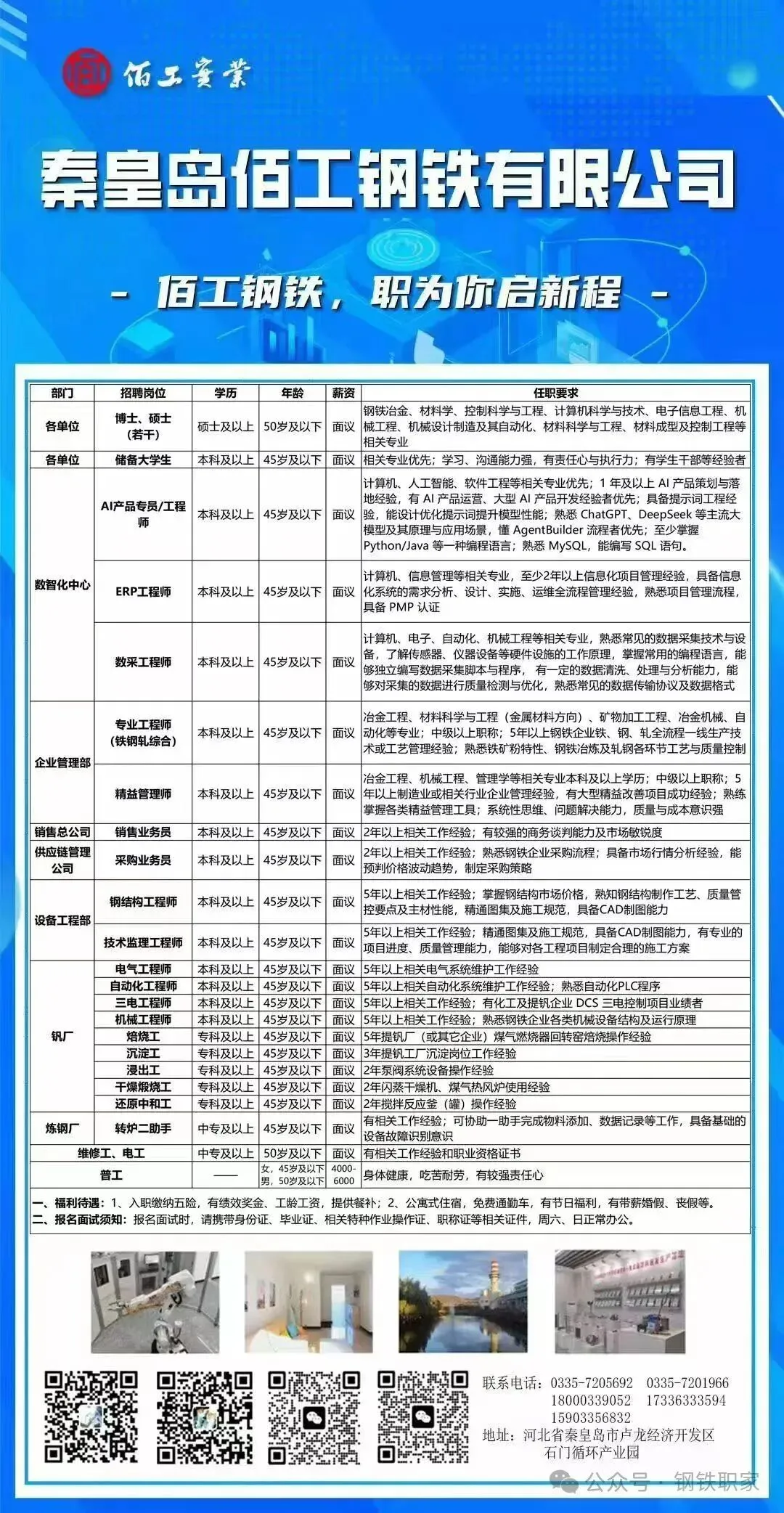 秦皇岛佰工钢铁招聘