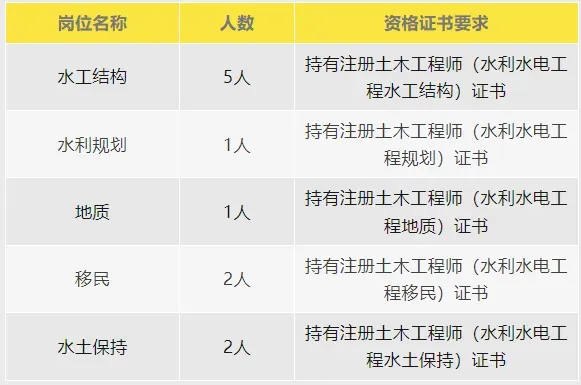 第二批专项招聘注册土木工程师(水利水电工程)11人,具体岗位及人数如下: