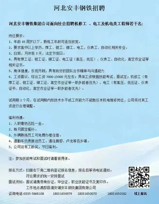 河北安丰钢铁招聘