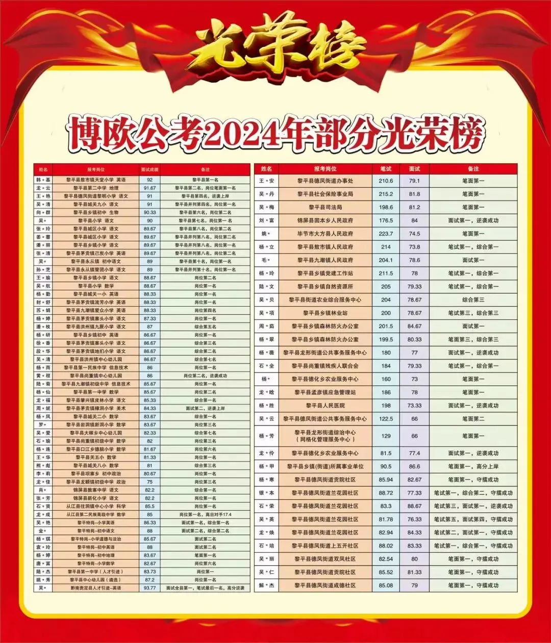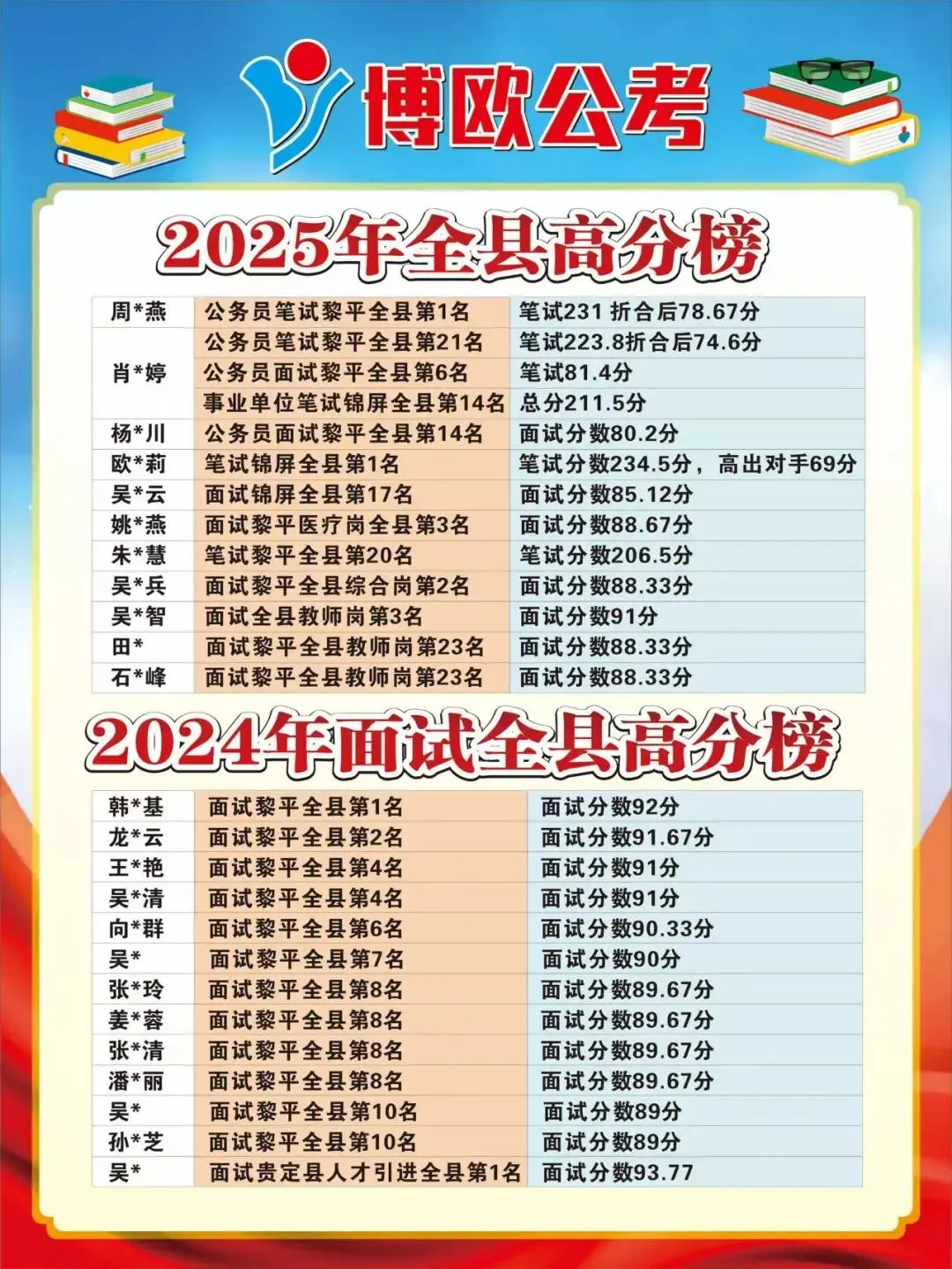 贵州黎平博欧教育成立于2010年, 学校地址位于黎平二中旁二楼和三楼。讲师来自全国各地,师资力量雄厚,办学理念新颖。自创立以来,多次创造100%过关率,已培养上千名学员成功上岸,被学员称为良心教育机构。专业开设公务员面试培训和事业单位笔试、面试培训,小班教学,职位保护。专家老师亲临授课,重难点,常考点,易错点,集中系统精讲,强化,提升,押题模考等,学习到考前,学时长,过关率高。一直秉承“用过关率赢生存,用口碑谋发展”的经营理念!博欧教育卓著于公务员招考培训、事业单位招考培训、教师招考培训、政法干警招录培训、农信社招录培训等公职类招录笔试、面试 培训。