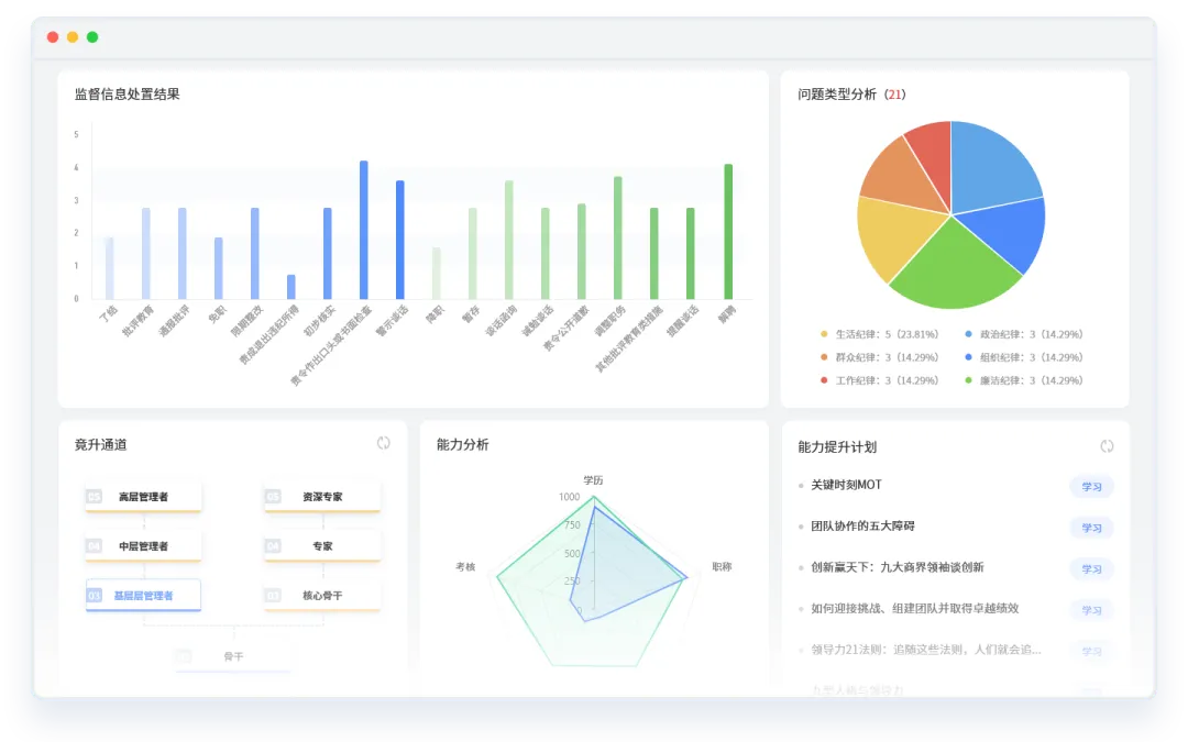 通过分析不同库别干部的能力要求和履职标准,构建了不同库别干部能力模型,是一项工作量大且对数据分析与处理要求较高的工作,尤其涉及评价的干部人才数量较多,单凭传统的人力工作很难完成,因此越来越多的企业通过借助数字化干部管理工具来实现。比如某国企结合企业需求对干部能力进行分类,分别提取核心能力要素,并且将其固化到企业上线的红海云HR数字化系统中,在系统中通过对每项能力要求进行清晰的定义和分级,根据不同库别干部需要具备的能力要求自定义设置相应的能力项,并对每项能力项设置相应的等级,生成不同等级的干部能力模型,实现对干部队伍进行综合智能研判,科学精准提高选人用人质量。
