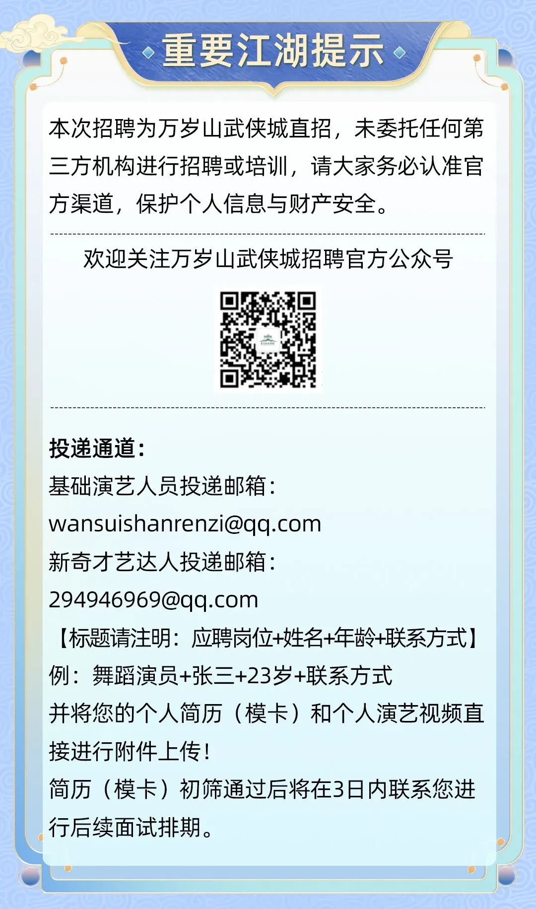 >万岁山武侠城招聘!