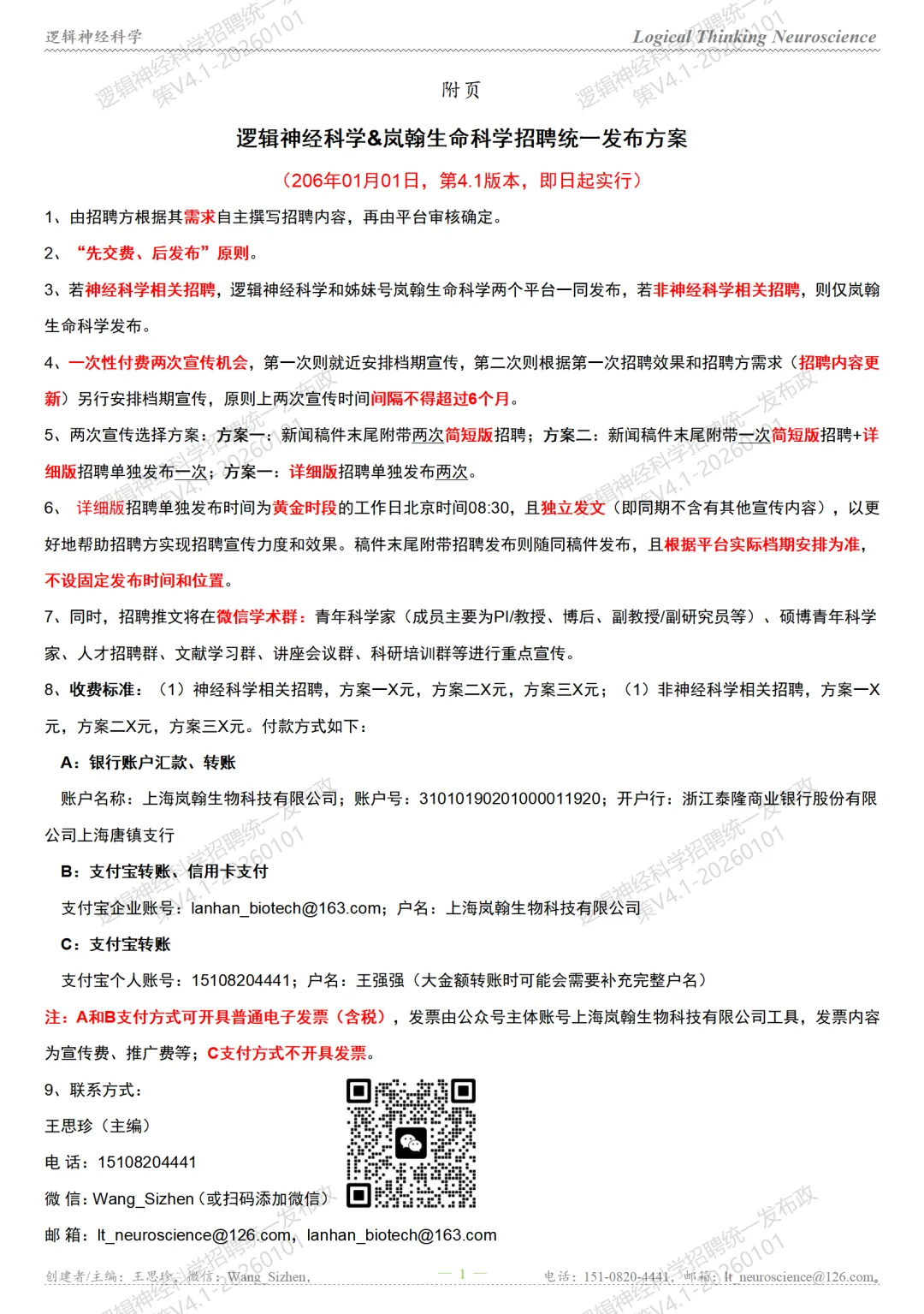 神经科学/神经生物学/脑科学相关招聘信息发布最新方案(20260101V4.1)