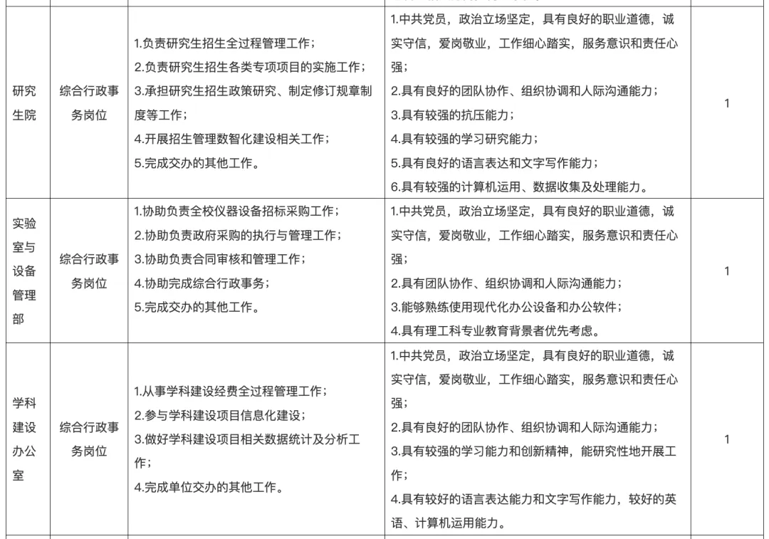 岗位一览表