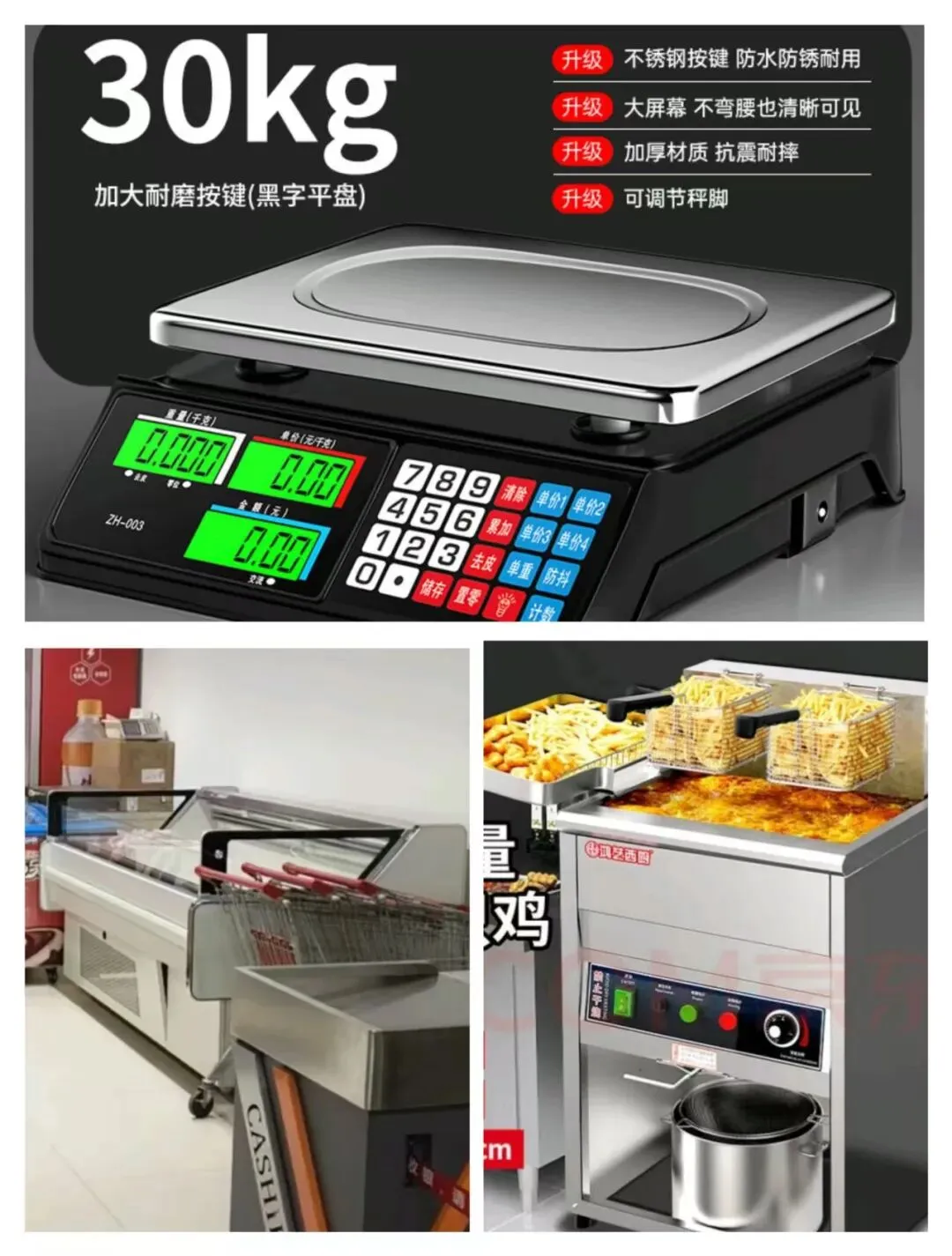 低温柜全新2米,数量两个,立式油炸锅一个,电子称一个,价格优惠。
