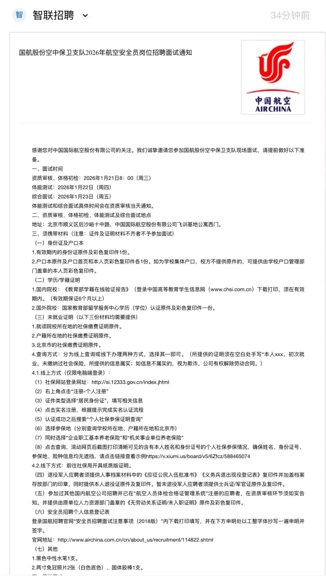 中国国际航空招聘 #面试通知 #航空安全员 #空乘招聘 #空姐招聘