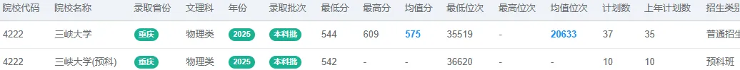 除了常规的本科批专业录取,三峡大学在重庆还设有少数民族预科班的招生类型。2025年,物理类预科班的录取分数为542分,历史类预科班为527分。这是国家面向少数民族考生的优惠政策,为其提供了通过一年预科学习再进入本科阶段的机会,录取分数通常也低于同校普通专业,是一条重要的升学路径。