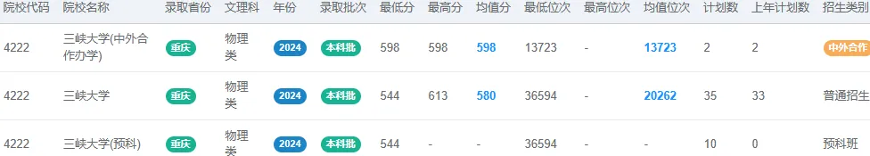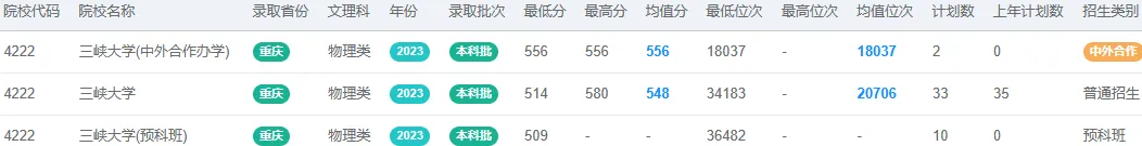 根据2025年现有的公开招生录取信息,三峡大学在重庆的普通类本科批次中,未设置明确以“中外合作办学”名义单独招生的专业项目。2024年在重庆有中外合作招生。