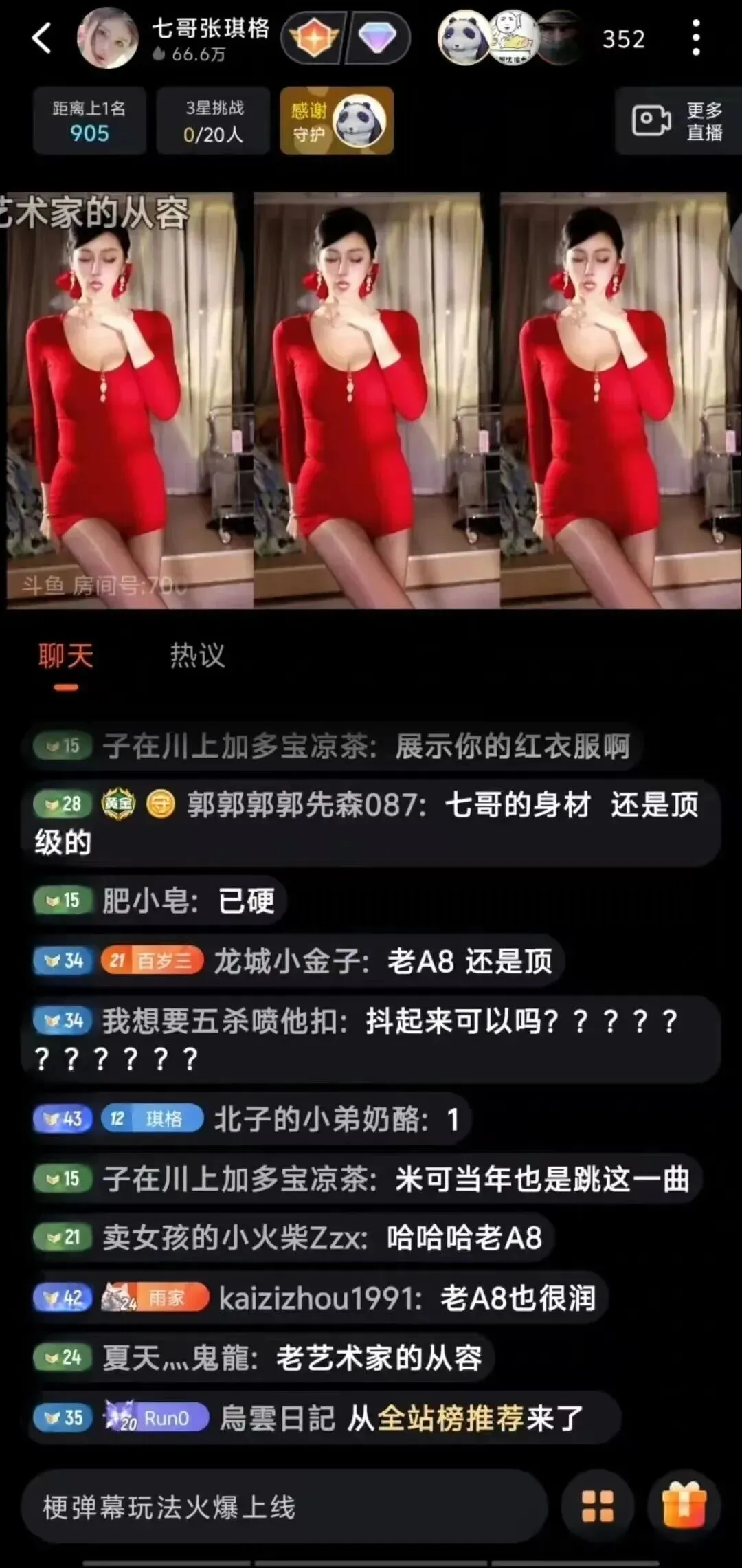 “我今年为了去新平台,提前减肥了一年!”斗鱼主播张琪格在直播间甩了甩长发,对着镜头展示自己明显纤细的腰身。这位曾经舞蹈区的头牌,如今正站在职业生涯的十字路口。
