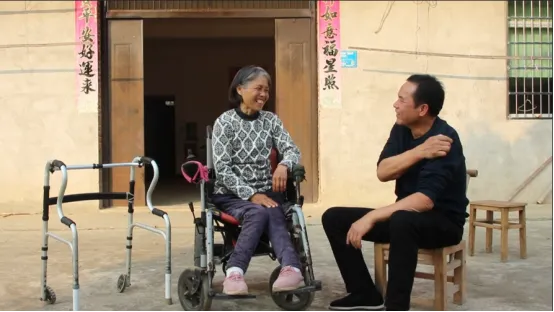 2025年秋,王道玖回到阔别多年的罗溪村。在村民简嫦娥家,一辆略显陈旧的电动轮椅让他露出了欣慰的笑容。