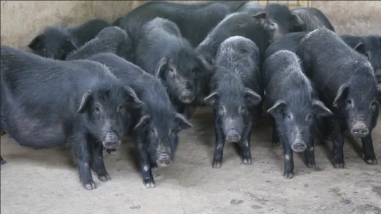 2021年,“十四五”开局之年,王道玖上任翰堂镇江边村乡村振兴第一书记。这里的山林坡地多,规模化种植条件不如前两个村。但走遍了山水的他,却从中看到了不一样的“商机”——发展高附加值的特色养殖。“这种猪最大的优点是从来不打疫苗,它满山跑。”王道玖介绍。