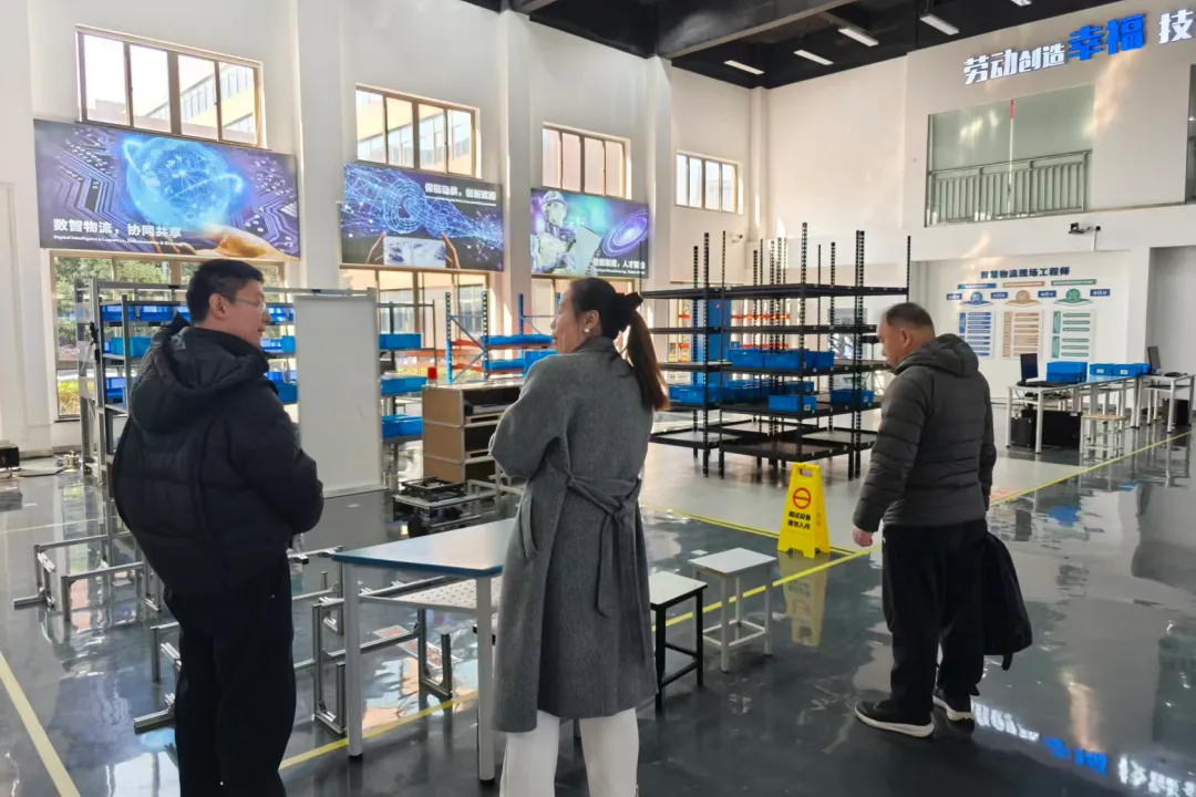 在崔娜主任的陪同下,鄞州职高团队实地参观了宁职大供应链学院的实训基地,详细了解了智能分拣站等实训场景的设施布局与教学应用情况,为今后双方实训资源的共建共享与长远布局奠定了基础。