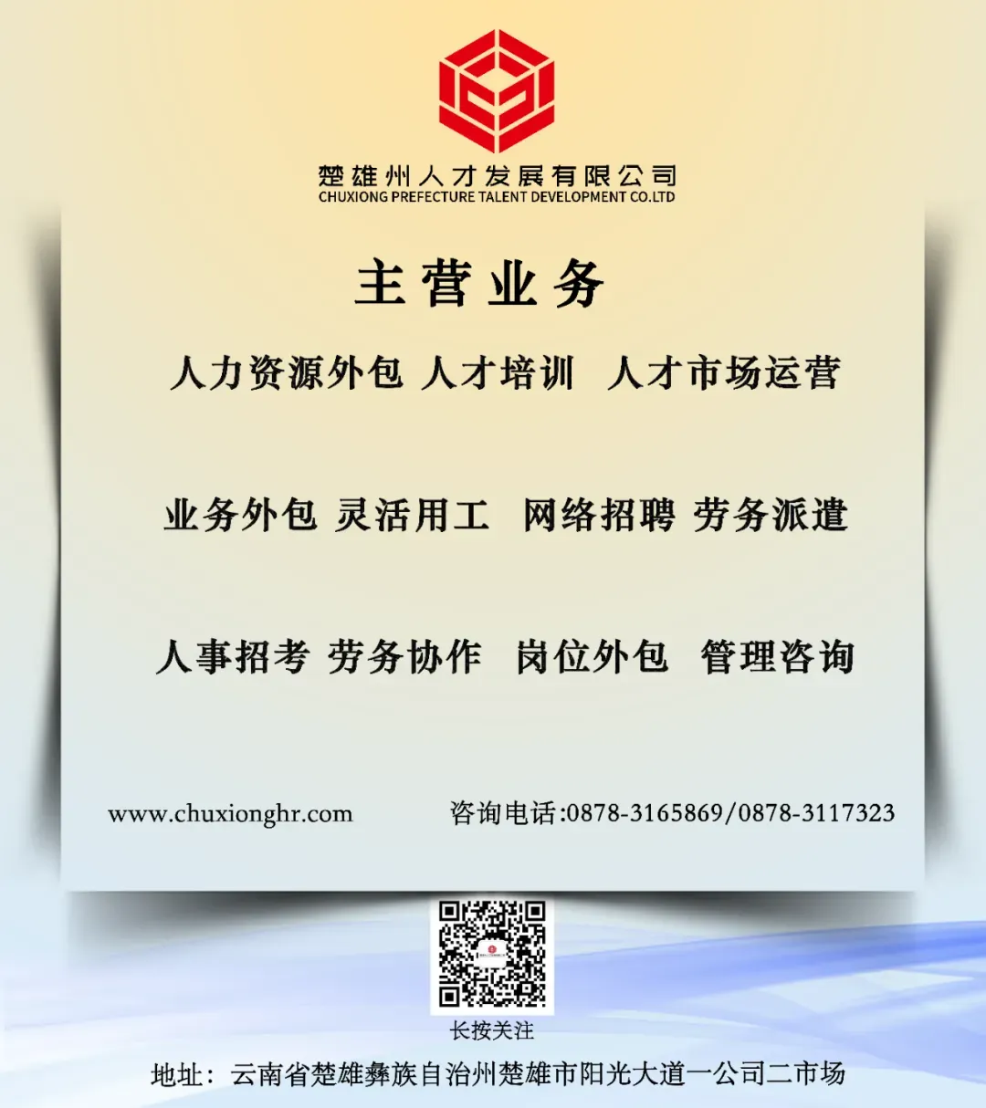 未来,我们将继续以5A标准为锚点,深耕人力资源服务、科技成果转移转化、创新创业空间运营等核心业务,持续深化诚信体系建设,优化全产业链服务能力,充分发挥国有人力资源服务企业的标杆示范作用,搭建人才与产业的对接桥梁,助力区域人力资源行业的诚信化、专业化发展!为楚雄州经济社会高质量发展贡献更强人才动能!