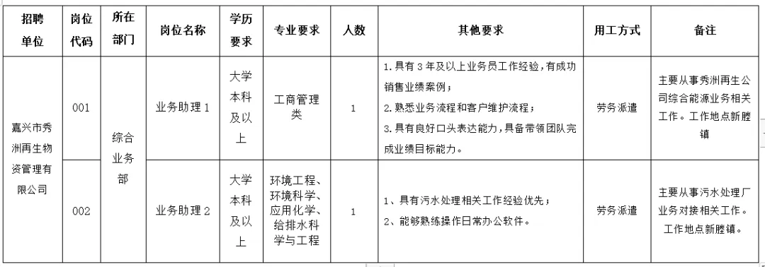 ①《嘉兴市秀洲再生物资管理有限公司及下属子公司公开招聘工作人员报名登记表》(附件2);