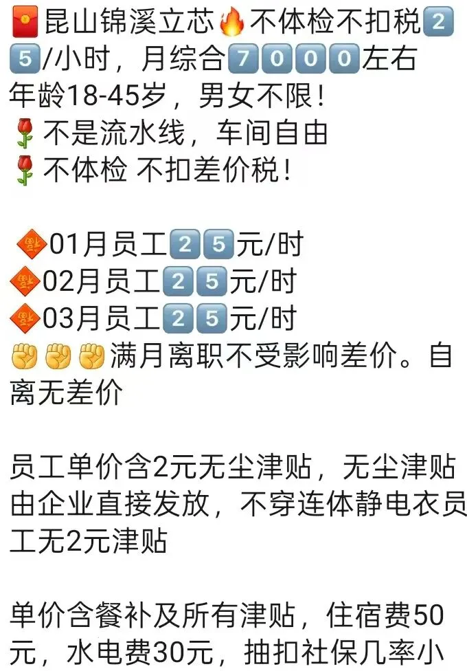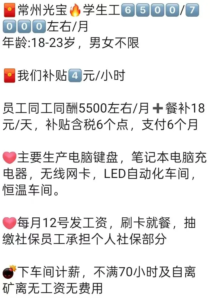 员工18元/时➕餐补12元/天➕住宿免费
