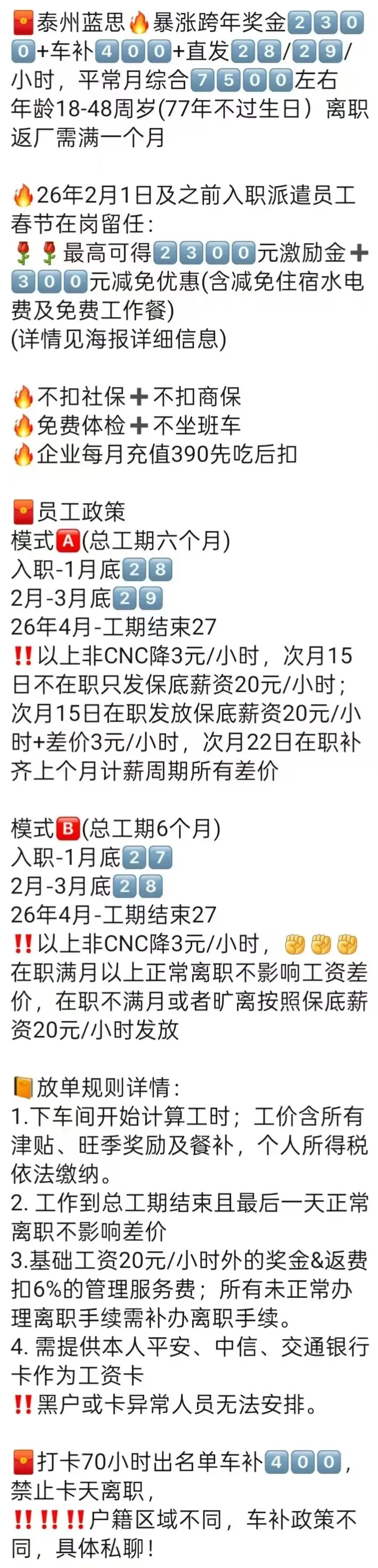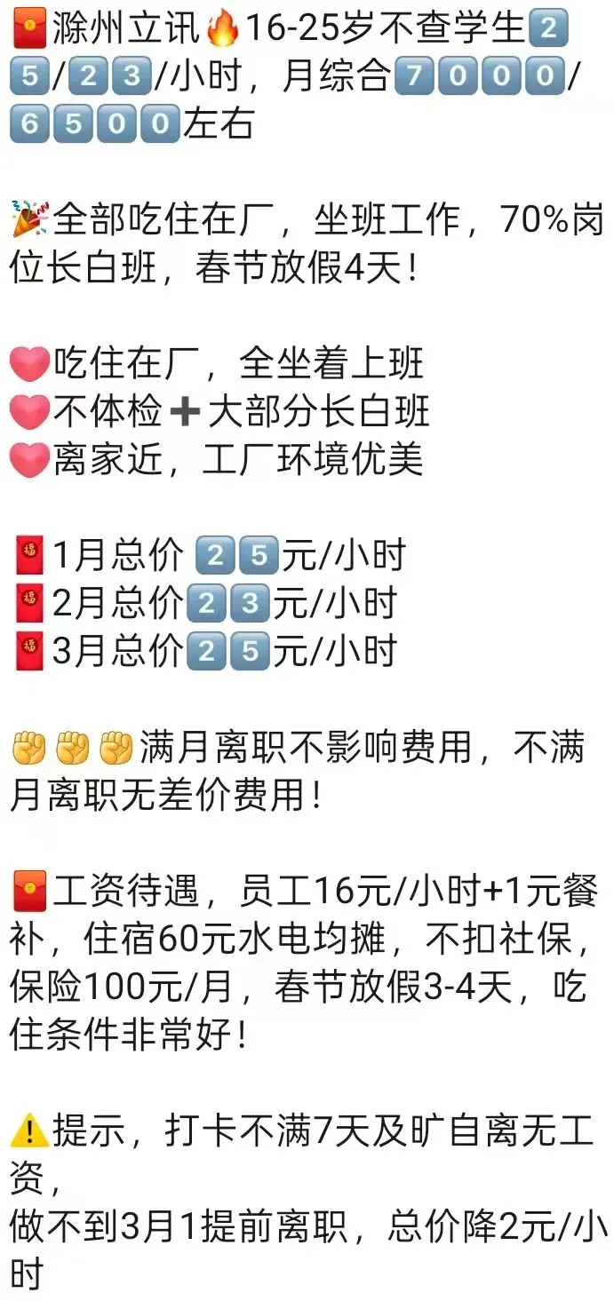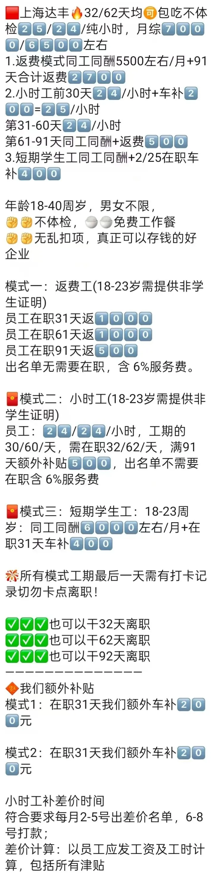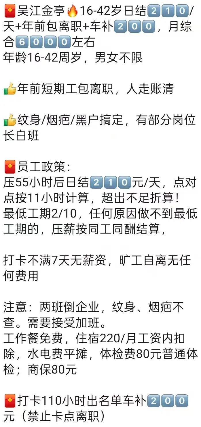 ⚠️注意事项:不满10天离职或旷自离按底薪2100元同工同酬发无差价!员工转正无差价!