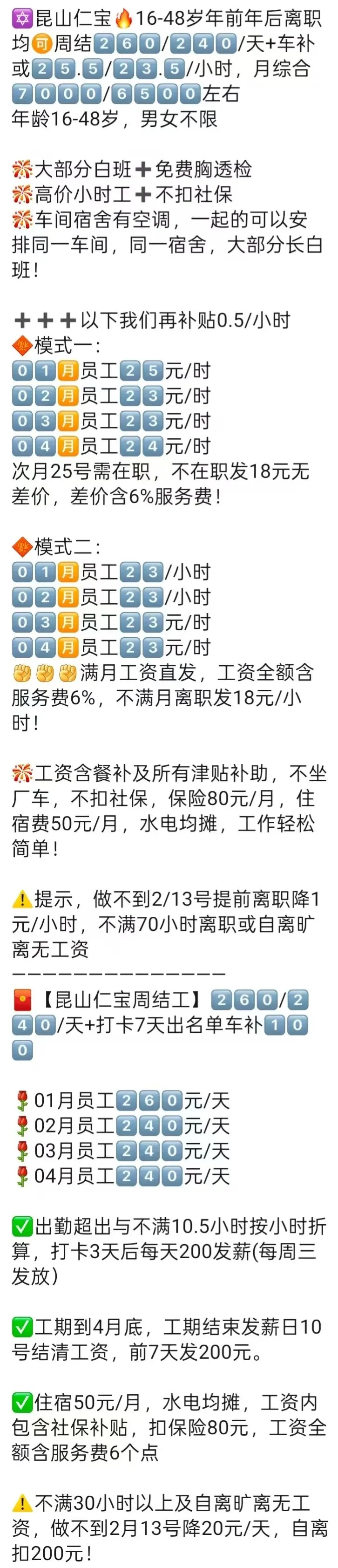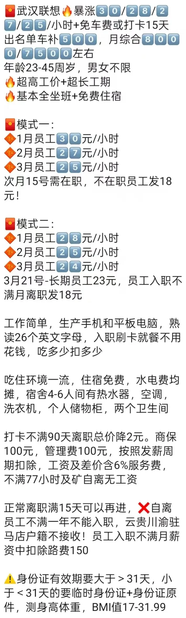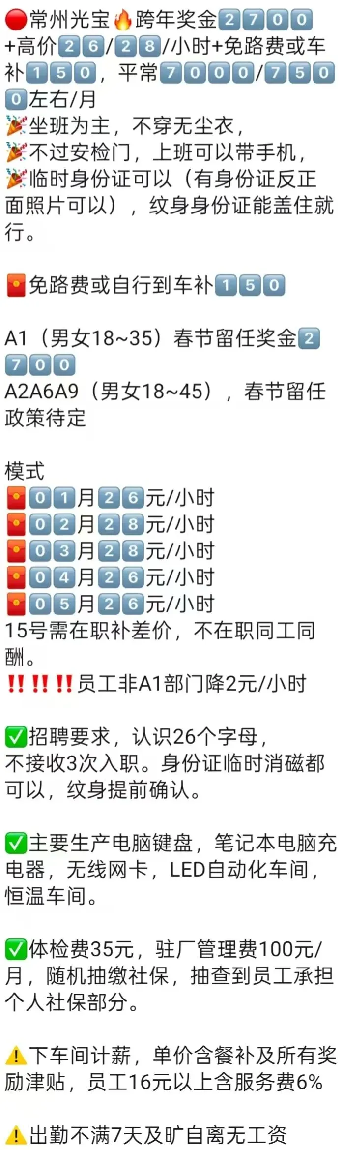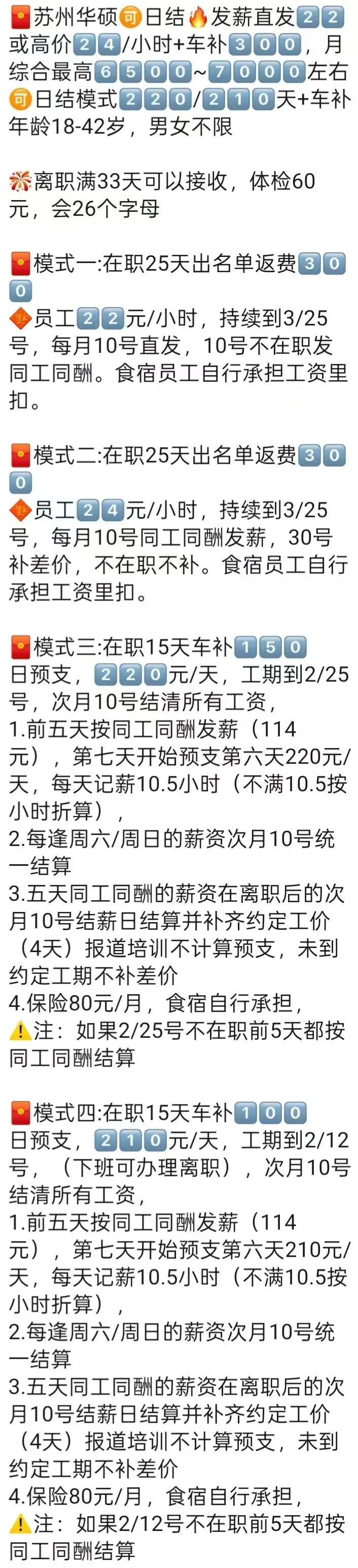 ⚠️注意事项:不满10天离职或旷自离按底薪2100元同工同酬发无差价!员工转正无差价!